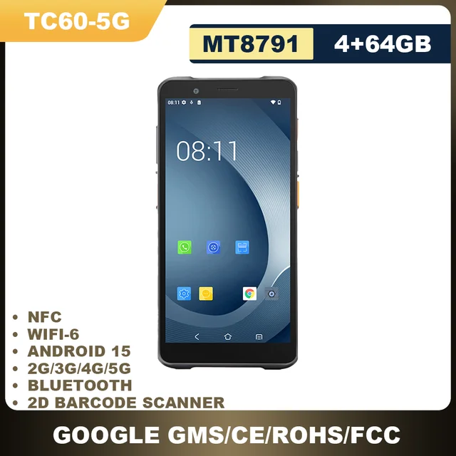 T60-5G 5G WIFI-6 Mobile Handheld Computer Android 15 Data Terminal Barcode Scanner PDA 6" Screen CM60 4+64GB IP67 13.56MHz NFC